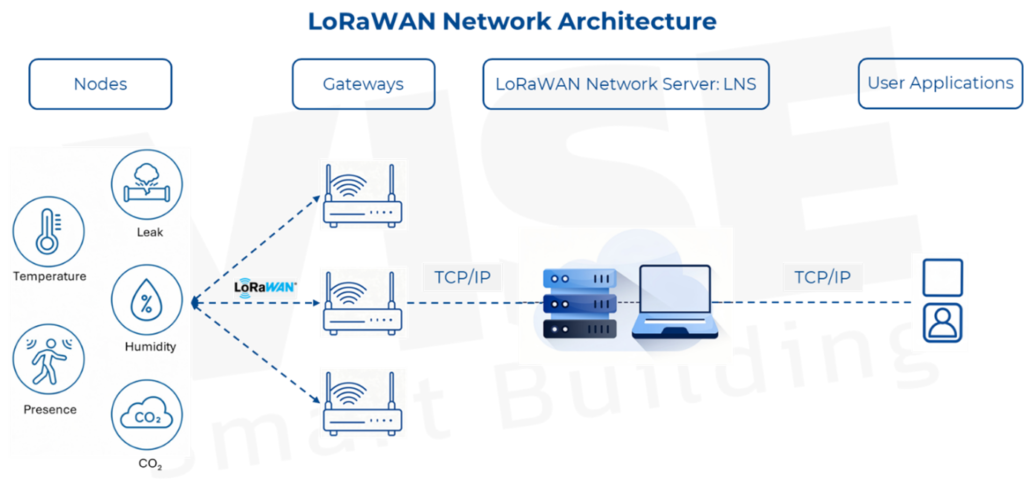 While LoRaWAN can function independently, its efficiency is maximized when integrated into a Building Management System (BMS) — enabling centralized control and data correlation across all building systems.